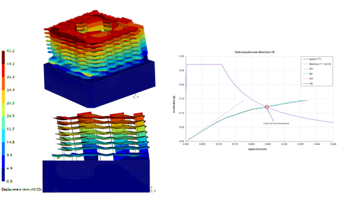 De plus, l’étude numérique de la deuxième étape basée sur une analyse non linéaire dite push-over a permis de démontrer la tenue au séisme du projet sans besoin de renforcement particulier.